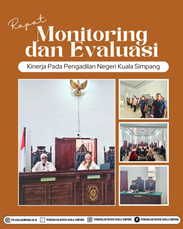 (Kuala Simpang, 4 Maret 2026), Pengadilan Negeri Kuala Simpang melaksanakan Rapat Monitoring dan Evaluasi (Monev) Bulan Februari yang diikuti oleh seluruh aparatur Pengadilan Negeri Kuala Simpang sebagai bentuk komitmen dalam menjaga konsistensi kinerja serta meningkatkan kualitas pelayanan kepada masyarakat.